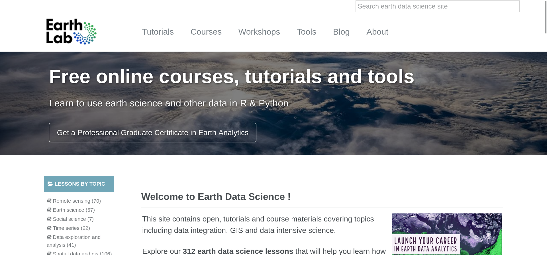 This platform has a wide variety of resources for working with Earth Data, introducting concepts thoroughly before diving into excellent code examples with lots of challenges. This is a great place for Earth Scientists to increase technical skills.