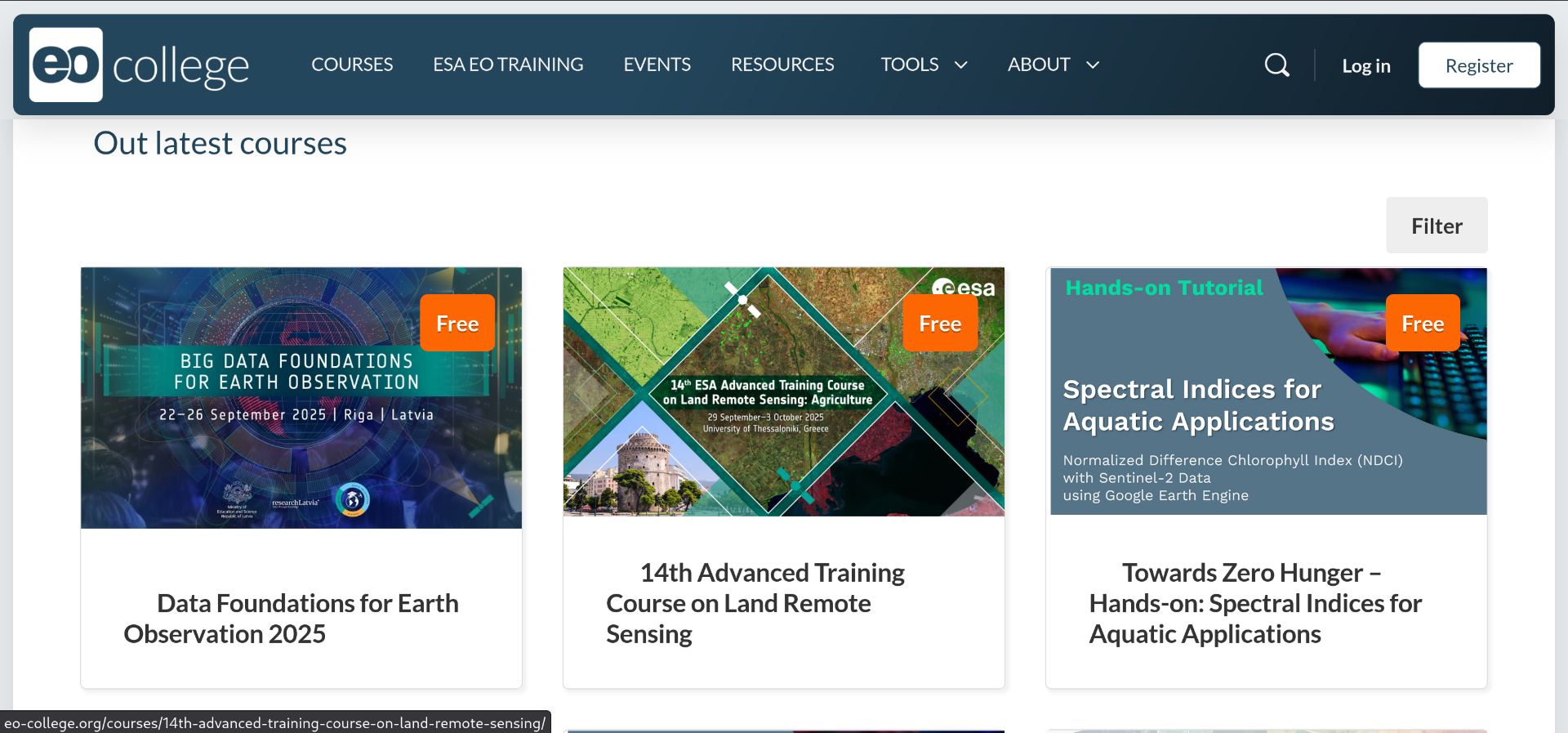 This is a modern e-Learning platform with a range of courses from introductory to advanced topics. The courses feature quizzes and interactive demos. Excellent introductory courses are also available such as the Introduction to Machine Learning for Earth Observation