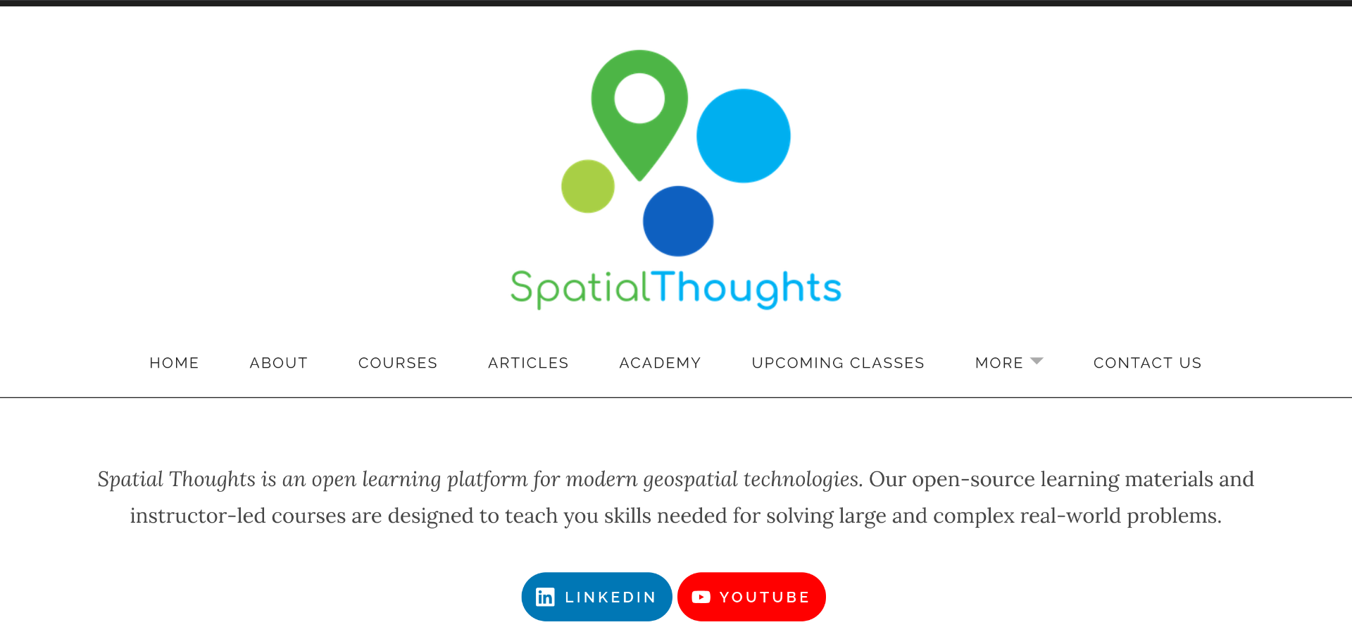 This platform features detailed courses in open-source software. Founded by Ujaval Gandhi, a leader in open-source geospatial training, Spatial Thoughts is a fantastic place to learn QGIS, Python, GDAL, and Google Earth Engine.